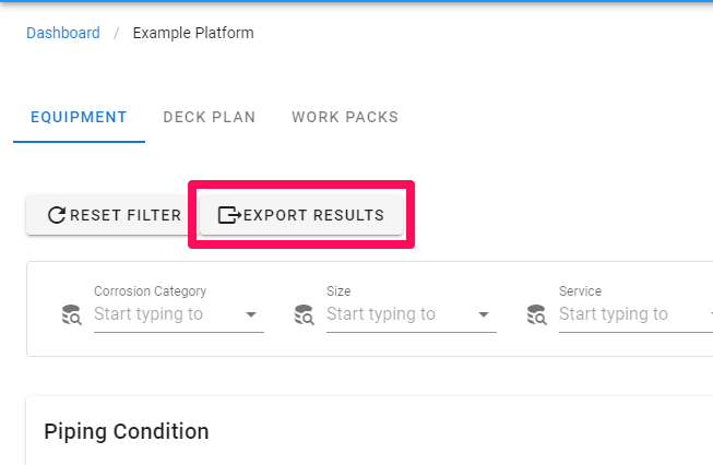 You can export data related to your selected part, using the part detail modal’s export data button.