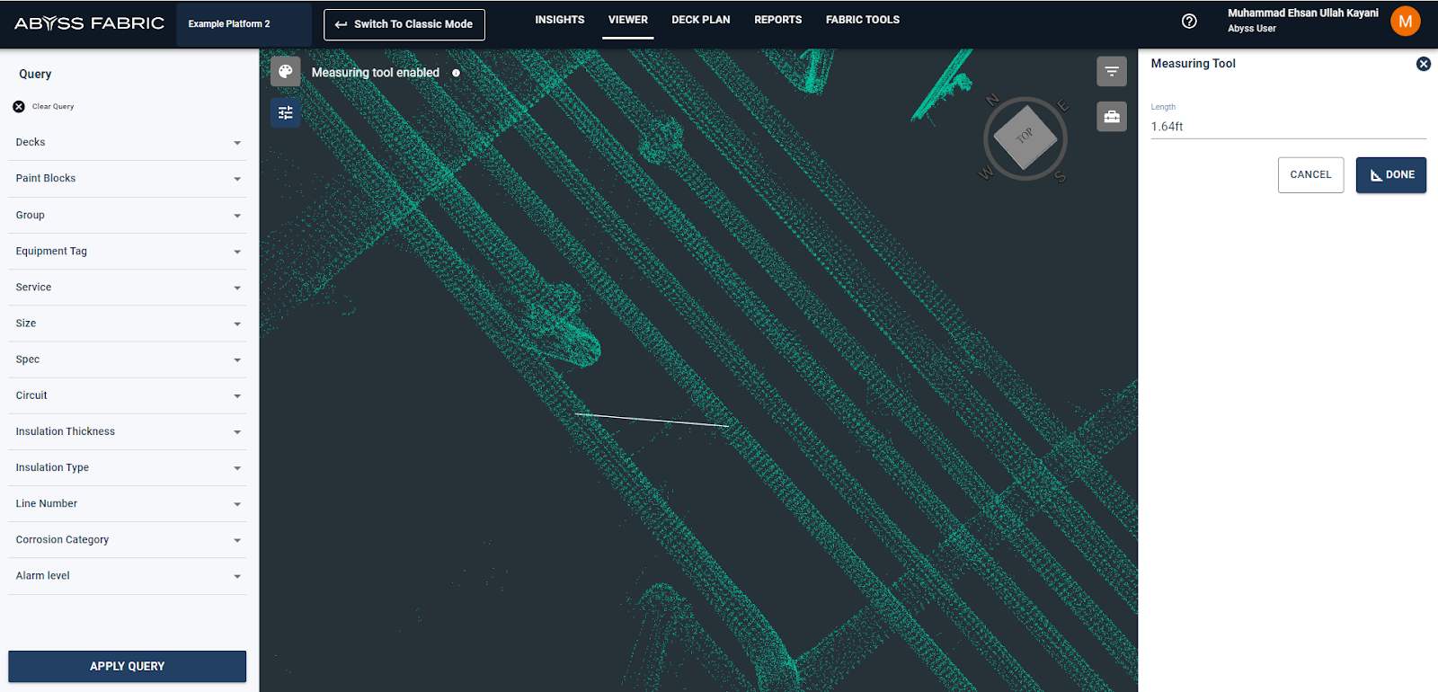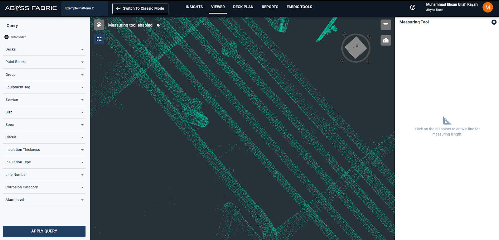 While viewing the complete platform or a certain query (If the user wants to measure distance between different assets)