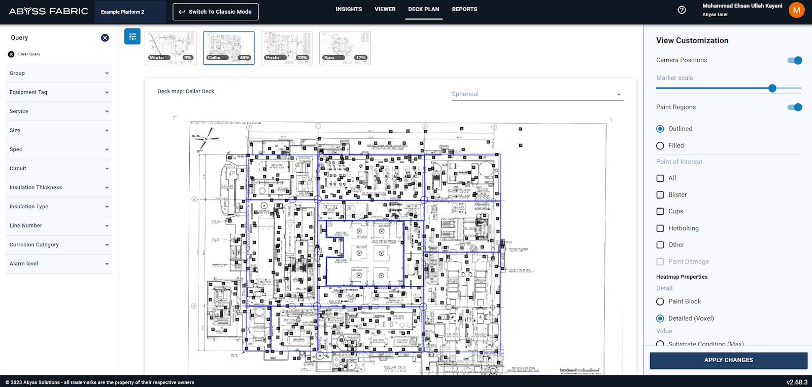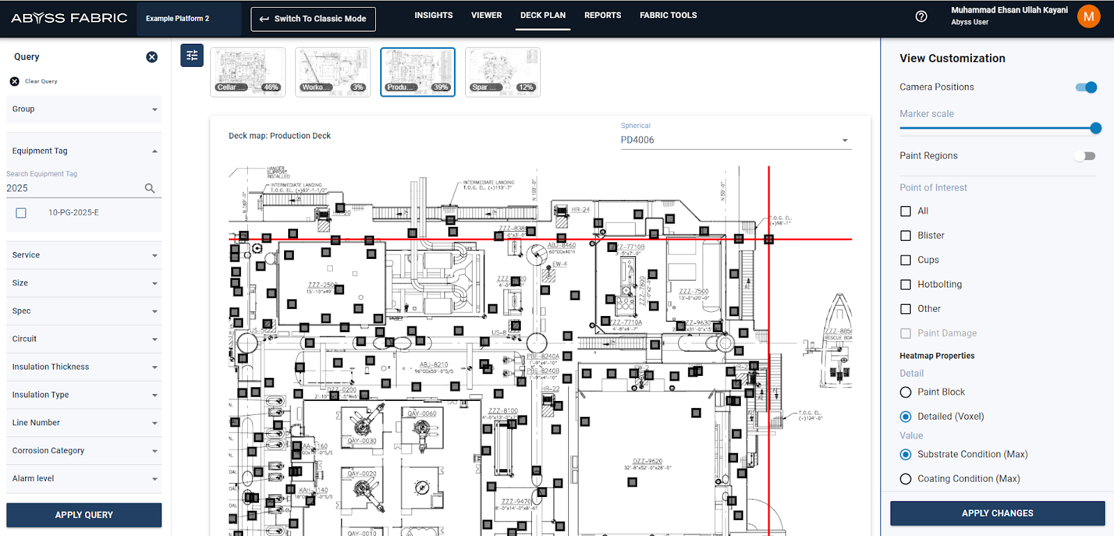 Welcome to the comprehensive user guide for the Deck Plan & Heatmap feature within Abyss Fabric. Whether you're a novice or an experienced user, this guide was crafted to simplify your navigation through the intricacies of this tool. We’ve focused on enhancing your experience by meticulously detailing the steps for deck navigation, location searching and heatmap application within Abyss Fabric. We hope this guide helps you unlock the full potential of Abyss Fabric's Heatmap feature.