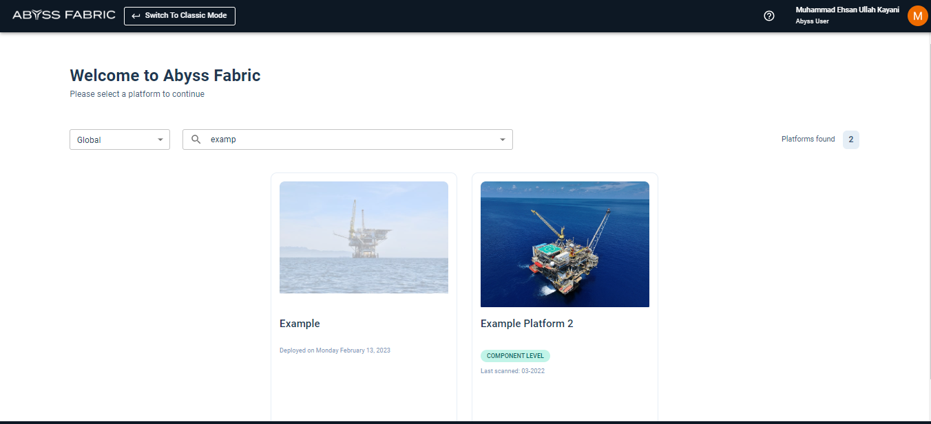 Users can see the available platforms. Users can use the search functionality to further filter out the results. Clicking on a platform tile will take the users to that platform